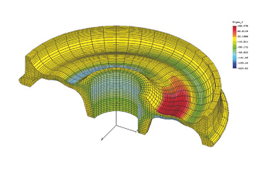 GHH-BONATRANS verifies designs analytically (for example axle strength calculations) as well as by the finite element method “FEM” (for example wheel strength designs). We have experience with design and calculations according to EN, AAR or GOST standards. Our experts have also developed special calculation procedures, such as design according to AAR S-669, thermomechanical analysis of braked wheels, or calculations of resilient wheels including the effect of rubber segments.